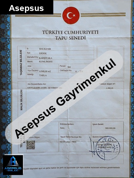 balıkesir / erdek / karşıyaka mh. konumunda satilik-arsa satışta!