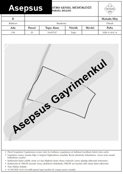 10697 m2 - ada 134 - parsel 23